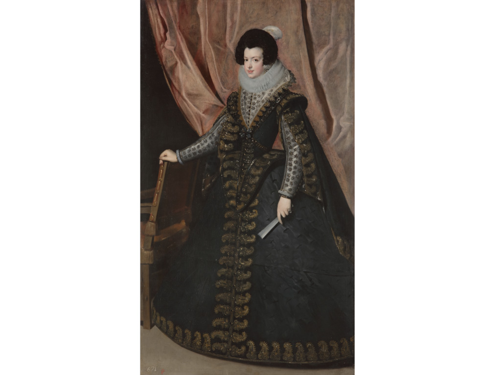 پرتره ملکه اسپانيا Isabel de Borbón مي تواند مربوط به نقاشي مشهور Velázquez از همسرش فيليپ چهارم باشد که توسط Prado در مادريد نگهداري مي شد. اين اثر در سال 1808 در حمله ناپلئون به اسپانيا از مجموعه سلطنتي اسپانيا در مادريد تصاحب و بعدها در سال 1838 در مجموعه اشراف فرانسوي ديده شد و در نهايت در اختيار بانکدار بريتانيايي و مجموعه دار کتاب Henry Huth قرار گرفت، بستگان او اين تابلو را تا سال 1950 نزد خود نگاه داشتند تا زماني که آخرين بار در مزايده ديده شد.
