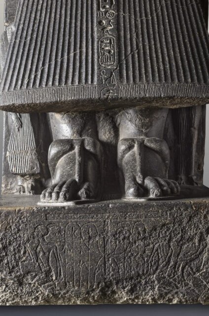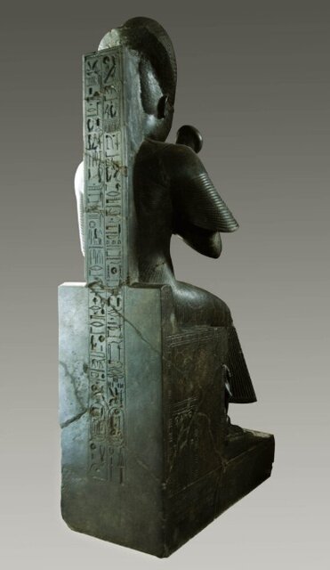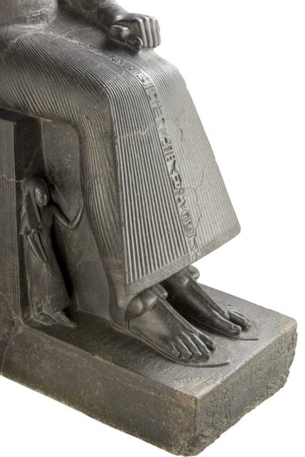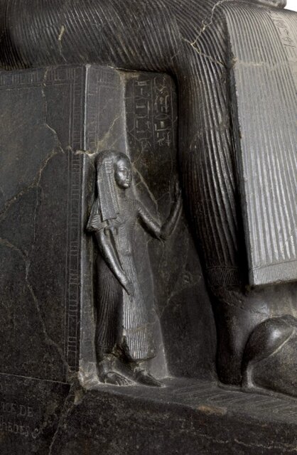 در دو سمت پاهاي مجسمه بزرگ دو پيکره کوچک قرار دارد، يک مرد جوان در سمت چپ مخاطب و يک زن بالغ در سمت راست مخاطب. زن بالغ ملکه «نفرتاري»، همسر اصلي پادشاه است. ملکه سربندي به سبک الهه «حاثور» بر سر دارد که دو شاخ آن شبيه قابي براي يک لوح خورشيدي و دو پر بلند به نظر ميرسند.