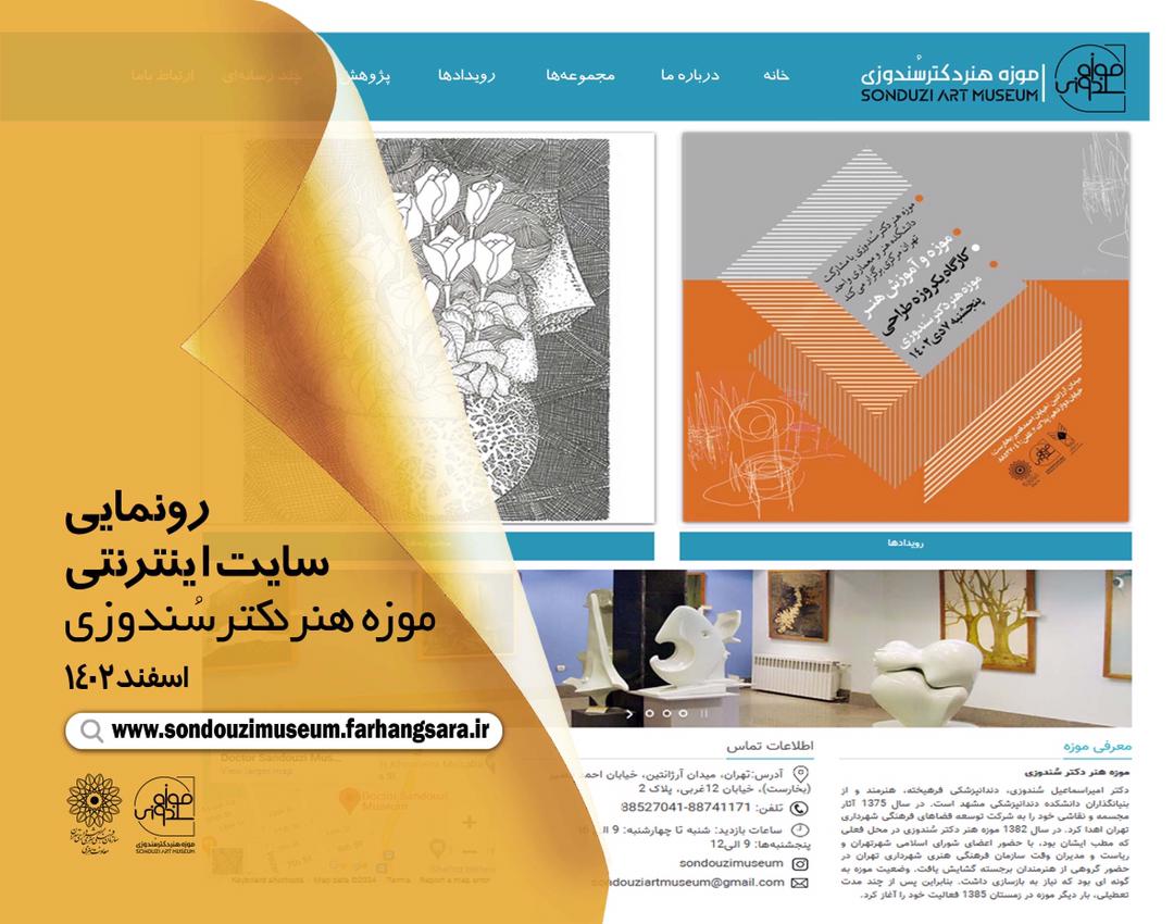 اين سايت به نشاني www.sondouzimuseum.farhangsara.ir و در بخش هاي مختلفي همچون: معرفي هنرمند و موزه، پژوهش، نمايش مجموعه آثار طراحي، نقاشي و مجسمه و اخبار مربوط به رويدادهاي اين موزه طراحي شده است.