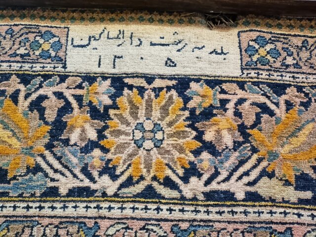 ميثم نوائيان، با بيان اينکه موزه شهر رشت به صورت دورهاي، اموال موجود در مخزن را به نمايش عموم ميگذارد، ادامه ميدهد: ۲۰ خرداد ۱۴۰۲ و به مناسبت روز جهاني صنايع دستي، مقرر شد اين فرشها از انبار خارج و در معرض ديد عموم قرار گيرند. بر اساس شناسنامه اثر، اين تخته فرشها، توسط «دارالمساکين اداره بلديه رشت» و توسط زنان تحت پوشش دارالمساکين بافته شده است.