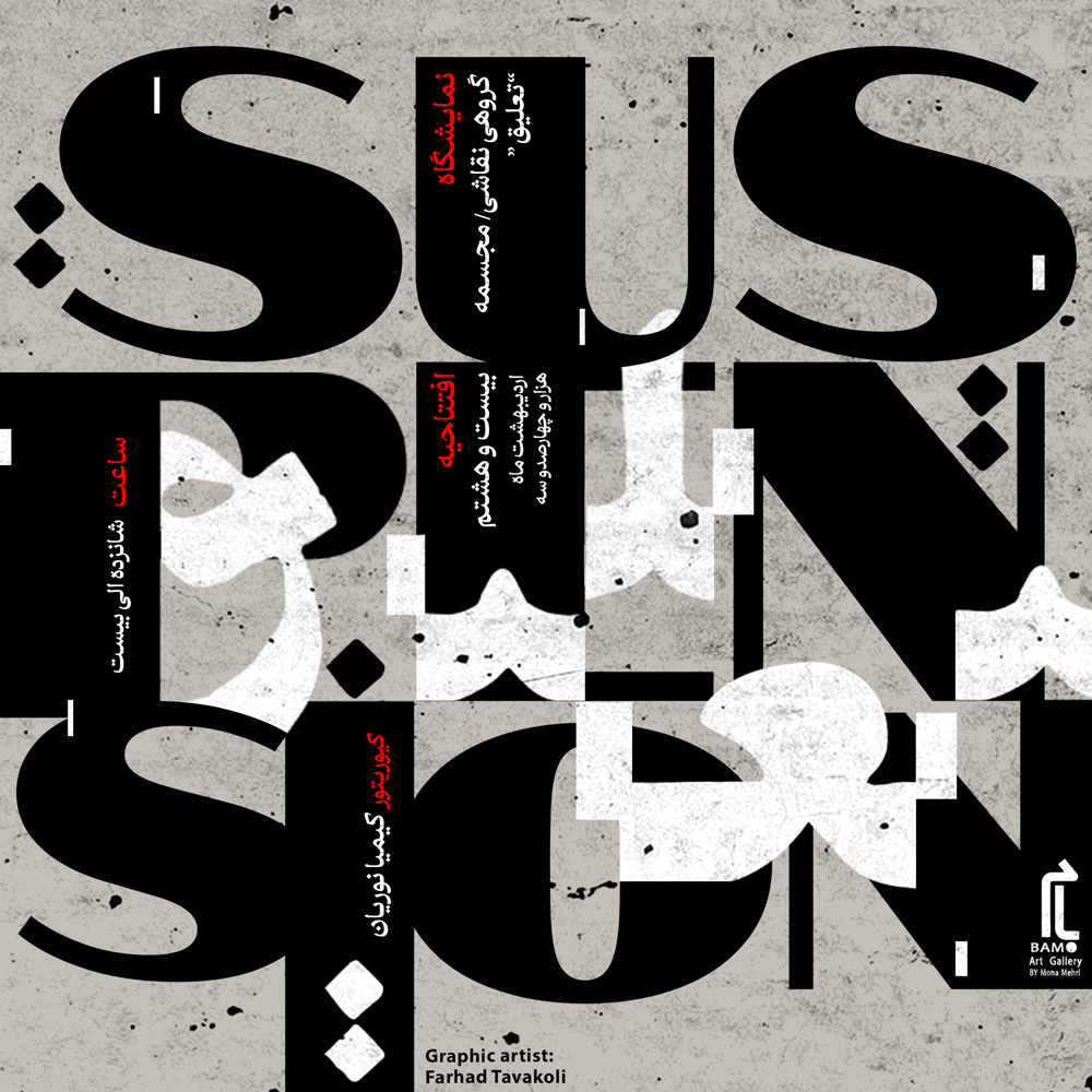 "تعليق" عنوان نمايشگاه گروهي نقاشي و مجسمه است که به کيوريتوري کيميا نوريان از روز جمعه 28 ارديبهشت ماه در گالري بام برپا مي شود.