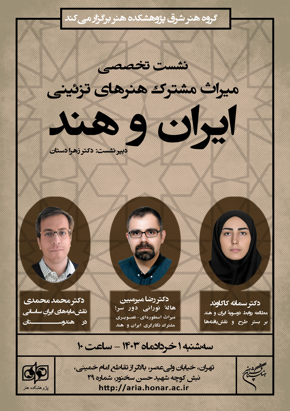 پژوهشکده هنر فرهنگستان هنر، نشست تخصصي «ميراث مشترک هنرهاي تزئيني ايران و هند» را سه شنبه 1 خرداد ماه برگزار ميکند.