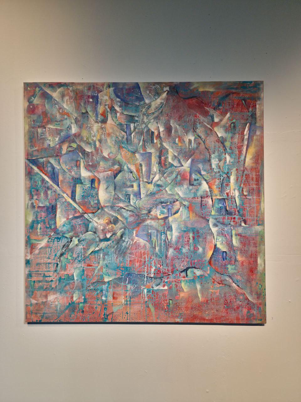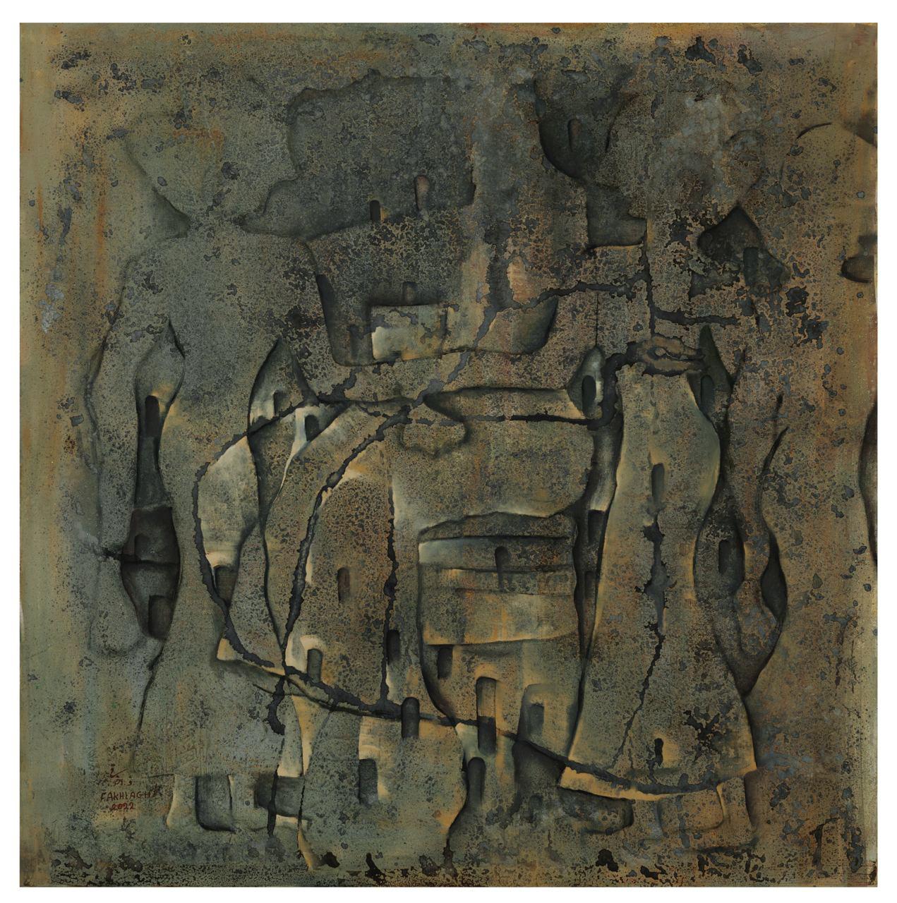 به گفته اين هنرمند در اين نمايشگاه، پانزده نقاشي با ابعاد 100×100 تا 200×200 سانتيمتر، دو مجسمه برنز از مجموعه "سمفوني ققنوس"، چهار چاپ چوب و يک اينستاليشن به نمايش گذاشته شدهاند. در نهايت ۱۹ اثر به نمايش گذاشته شده است. اين آثار نمادهاي مختلفي از تمدنها و اسطورهها را به تصوير ميکشند و هر يک داستان و مفهومي خاص را به مخاطب منتقل ميکنند.