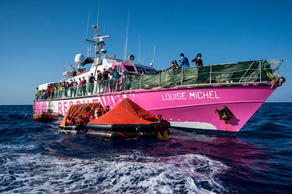 بنکسي نوشت: "قايق واقعي که من تأمين مالي مي‌کنم، MV Louise Michel، دوشنبه شب ۱۷ کودک بدون همراه را از مديترانه مرکزي نجات داد. به عنوان مجازات، مقامات ايتاليايي آن را توقيف کرده‌اند – که به نظر من اين رفتار وحشتناک و غيرقابل قبول است."