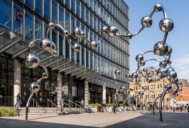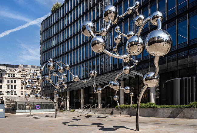 اين فرم پويا و بازتابدهنده که جهان پيرامون و تماشاگر را به تصوير ميکشد، به تجربههاي فردي و جمعي در فضاهاي متغير شهري لندن پاسخ ميدهد.
