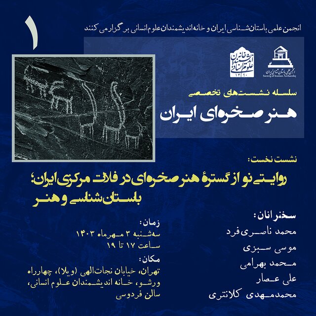 سلسله نشستهاي تخصصي هنر صخرهاي ايران با «روايتي نو از گستره هنر صخرهاي در فلات مرکزي ايران؛ باستانشناسي و هنر» برگزار ميشود.