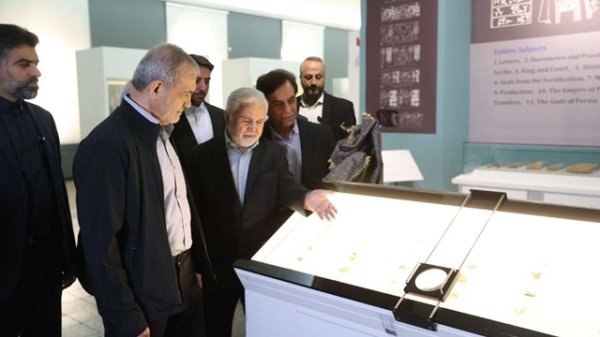 به گزارش گالري آنلاين به نقل از ميراث آريا، مسعود پزشکيان صبح امروز سهشنبه با حضور در محل موزه ملي ايران ضمن بازديد با مديران وزارت ميراث فرهنگي، گردشگري و صنايع دستي و نيز جمعي از فعالان اين حوزه، از بخشي از الواح هخامنشي بازگردانده شده به کشور که قرار است از فردا در ديد عموم قرار گيرد، رونمايي کرد.