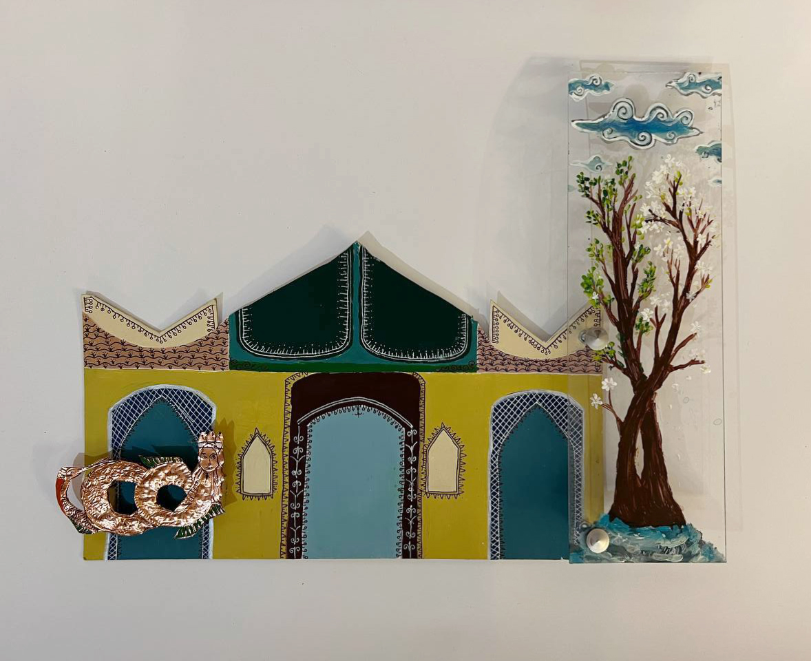 اين اثر با استفاده از سه صفحه شفاف به تصوير ميکشد که چگونه باغ ايراني به عنوان نمادي از بهشت زميني در فرهنگ و هنر ايراني شناخته شده است. در جهانبيني ايراني، باغ نه تنها فضايي براي آرامش و زيبايي، بلکه تجسمي از هماهنگي ميان طبيعت و انسان است. هر صفحه در اين اثر به لايهاي از معنا و تجربه باغ اشاره دارد: از هندسه و نظم باغهاي ايراني تا لطافت و روحانيت نهفته در اين فضاها. اين اثر نمادي از تلاش براي بازآفريني اين ميراث فرهنگي در قالبي نوين و معاصر است.