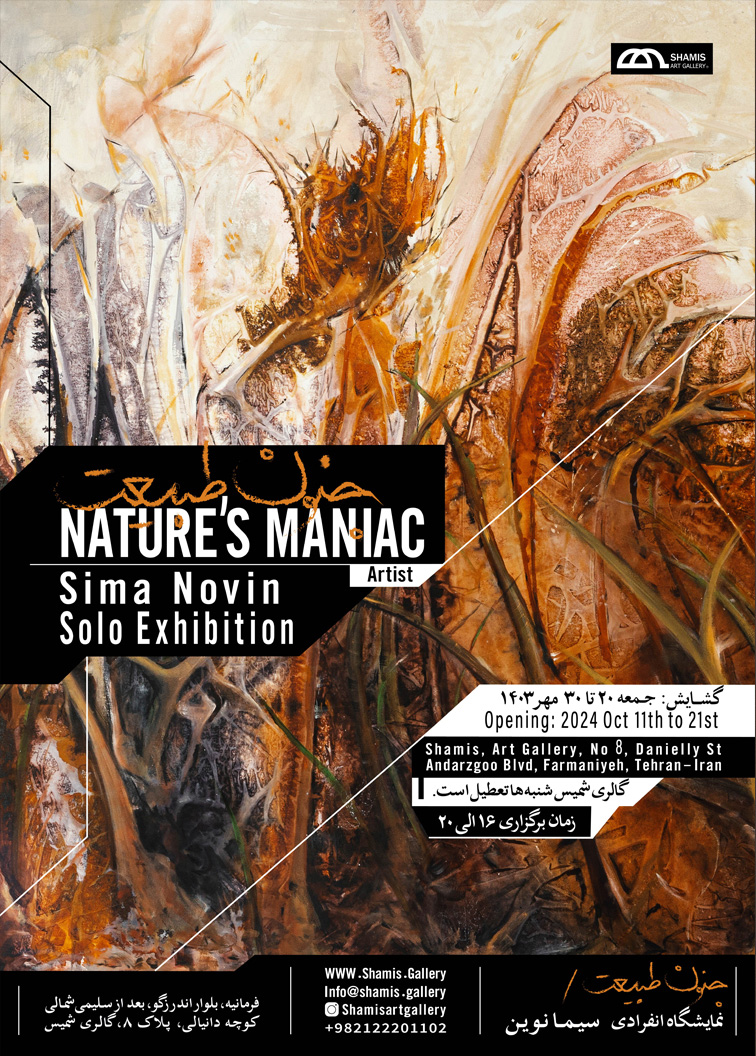 نمايشگاهي از آثار سيما نوين تحت عنوان "جنون طبيعت" از روز جمعه 20 مهرماه در گالري شميس برپا مي شود.