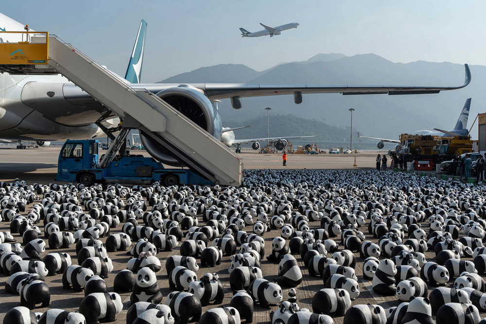 هنگکنگ بهمنظور بهرهبرداري از شور و هيجان محلي نسبت به پانداها، نمايشگاهي با ۲,۵۰۰ مجسمه پاندا برگزار ميکند.