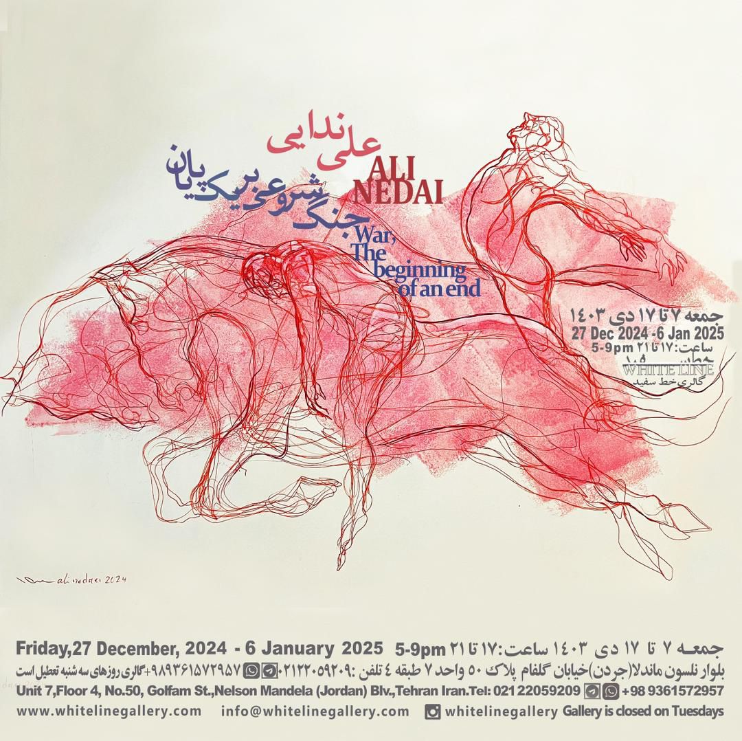 نمايشگاهي از نقاشي هاي «علي ندايي» تحت عنوان "جنگ، شروعي بر يک پايان" از روز جمعه ۷ ديماه در گالري خط سفيد برپا شده است و تا 24 دي ماه نيز ادامه خواهد داشت.