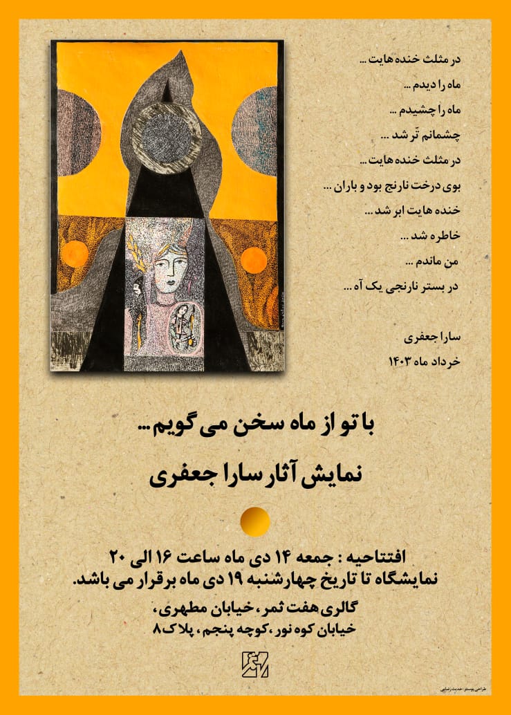 "با تو از ماه سخن مي گويم…" عنوان نمايشگاه نقاشي هاي سارا جعفري است که از روز جمعه 14 دي ماه در گالري هفت ثمر برپا مي شود.