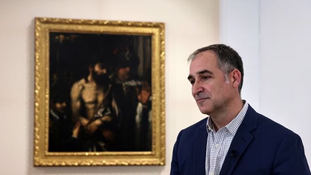 «رويترز» نوشت، اين اثر که تازه کشف شده است، مردي ناشناس را نشان ميدهد که سبيلي نازک دارد و قلمي در دست گرفته است. او در کنار دستهاي از کاغذها يا کتابها ايستاده است که البته در مقايسه با صحنهاي که «تيسين» بعدها روي آن نقاشي کرده بود، تصويري ساده است. «تيسين» روي اين پرتره تصويري از عيسي مسيح در حالي که تاجي از خار بر سر دارد را نقاشي کرده بود.