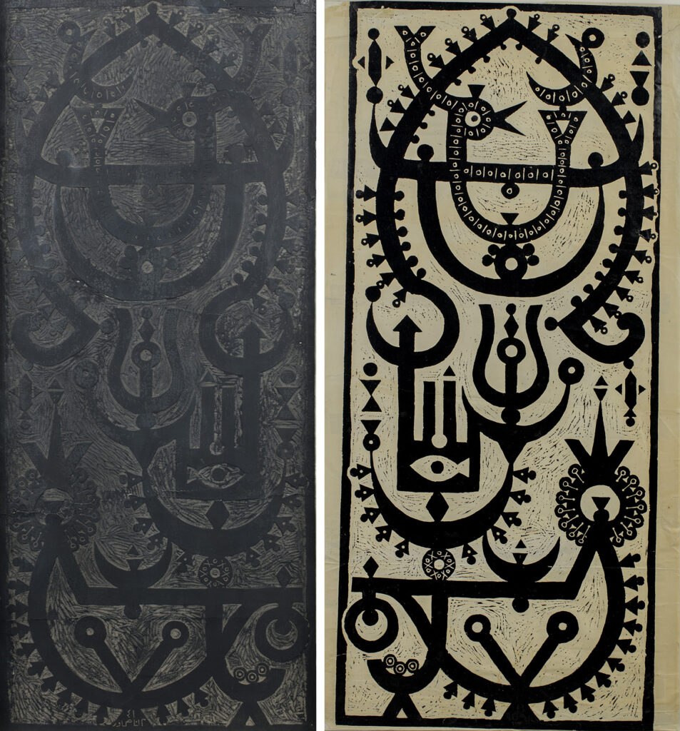 "بدونعنوان"/ اثر منصور قندريز/ رنگروغن روي بوم و اصل کليشه لينولئوم/ 1341