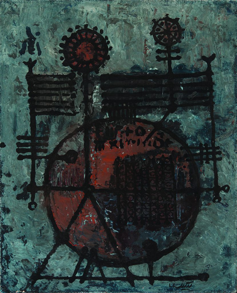 "بدونعنوان"/ اثر منصور قندريز/ رنگروغن روي گوني/ دهه 1340