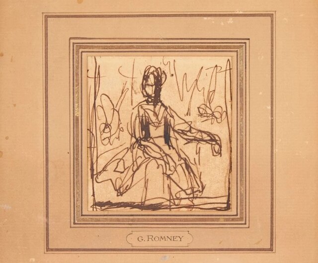بر روي قاب اين طراحي، نوشتهي «G. Romney» وجود داشت و مُهر کارگاه اين هنرمند نيز در پشت آن به چشم ميخورد. متخصصان نيز صحت اين انتساب را تأييد کردهاند. اين طراحي در حراجي «نقاشيهاي استادان قديم نقاشي، بريتانيايي و اروپايي» در Rosebery’s واقع در لندن در تاريخ ۱۲ مارس به فروش گذاشته شد و در حالي که قيمت تخميني آن ۶۰۰ تا ۸۰۰ پوند (۷۵۰ تا ۱۰۰۰ دلار) برآورد شده بود، در نهايت به مبلغ ۲,۳۶۲ پوند (۳,۰۵۵ دلار) فروخته شد. طبق اعلام مسئولان حراجي، اين اثر را يک مجموعهدار خصوصي در مالزي خريداري کرده است.