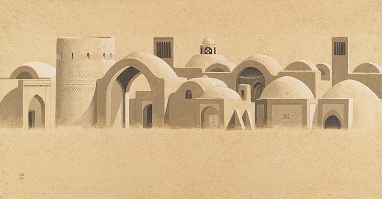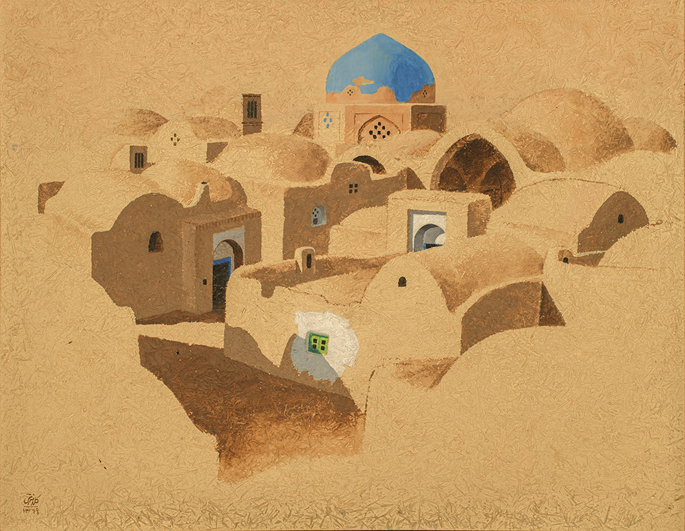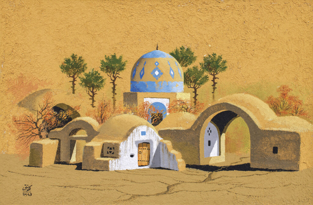 پرويز کلانتري را بيشتر با نقاشيهايش از روستاهاي ايران و خانههاي کاهگلي ميشناسيم. او در اين آثار، فراتر از بازنمايي صرف، به خلق فضايي شاعرانه ميپردازد که در آن، ترکيب رنگهاي گرم و اشکال هندسي ساده، حس نوستالژيک از وطن را در ذهن مخاطب زنده ميکند. براي کلانتري، کاهگل نهتنها يک عنصر بصري، بلکه نوعي زبان براي روايت داستانهاي سرزمين ايران بود. او با الهام از معماري بومي، جهاني خلق کرد که در آن، ديوارهاي فرسوده و پنجرههاي کوچک، بازتابي از حافظه جمعي مردمان اين سرزمين است.