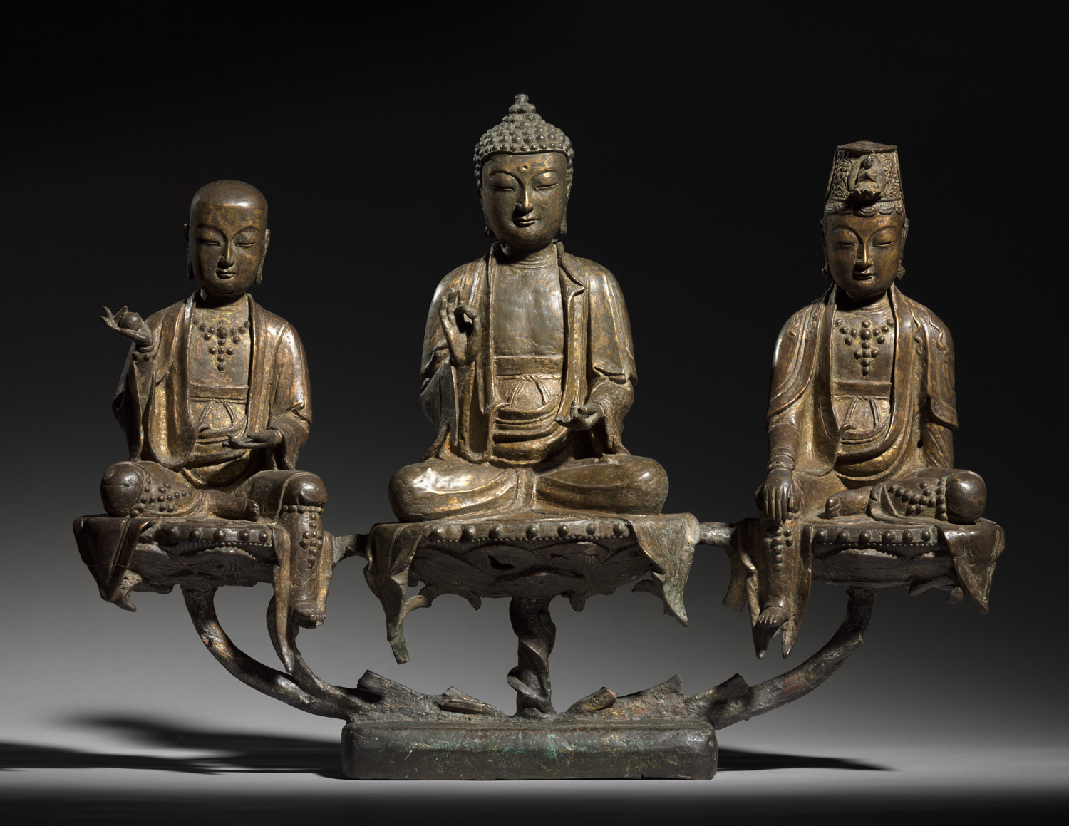 در سنت تصويري آيين بودايي، آميتابه اغلب در کنار دو بوداي ديگر ديده ميشود: آوالوکيتشواره در سمت راست و مهاستهمهپراپته در سمت چپ، که اين سهگانه را تحت عنوان ترياد آميتابه ميشناسند. اين سنت هنري احتمالا ريشه در منطقه گندهاره داشته و بعدها در چين، ژاپن و کره به اوج خود رسيده است.