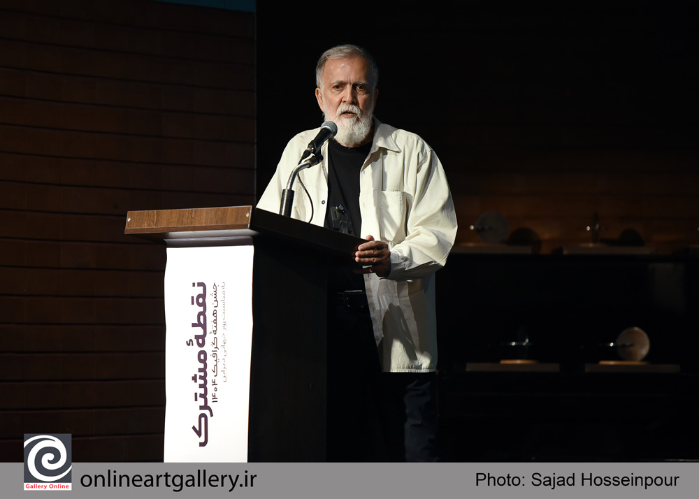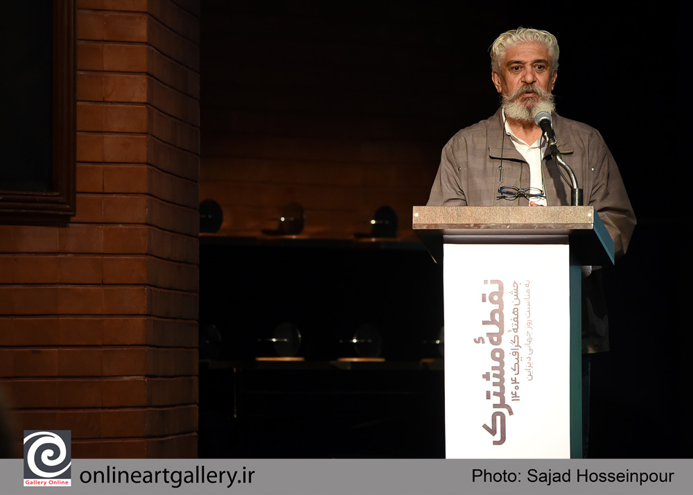 همين‌جا که ايستاده‌ام سر تعظيم فرود مي‌آورم به عزيزان حاضر در اين جمع. خانه هنرهاي تجسمي متعلق به شماست و در آن به روي تک‌تک هنرمندان باز است. موضوع 'نقطه مشترک' تنها درباره اشتراکات نيست، بلکه درباره افتراقات هم هست؛ آنچه گرافيست‌ها را از ديگران متمايز مي‌کند. فروتني در مفهوم رشته گرافيک نهفته است؛ رشته‌اي که در زمان ما هر جواني آرزويش اين بود در جمع بگويد 'گرافيک مي‌خوانم'. اين آغوش باز و اين پذيرش وجه تمايز گرافيست‌هاست و ميزباني از آن‌ها، افتخار و در عين حال، کار دشواري است. اما ذات هنرمند گرافيست همين است: در خدمت بودن، همراهي و پذيرش.