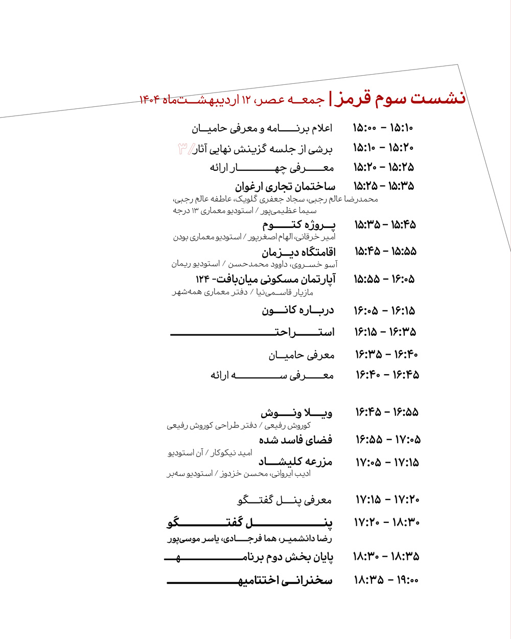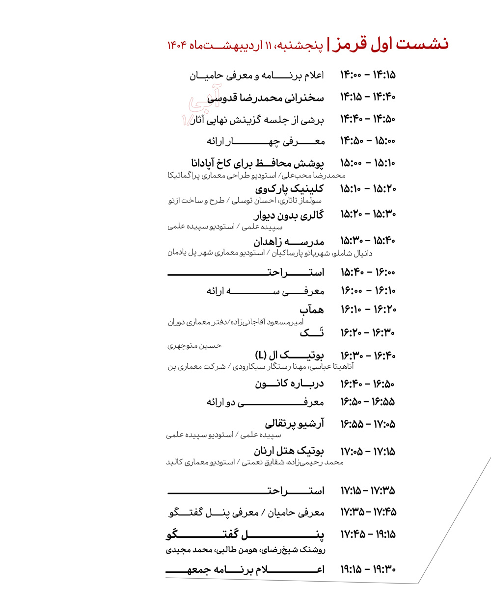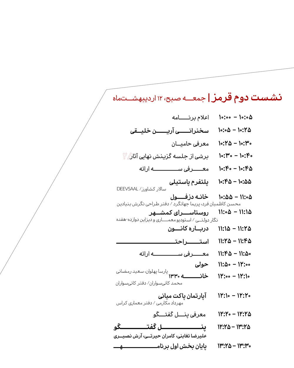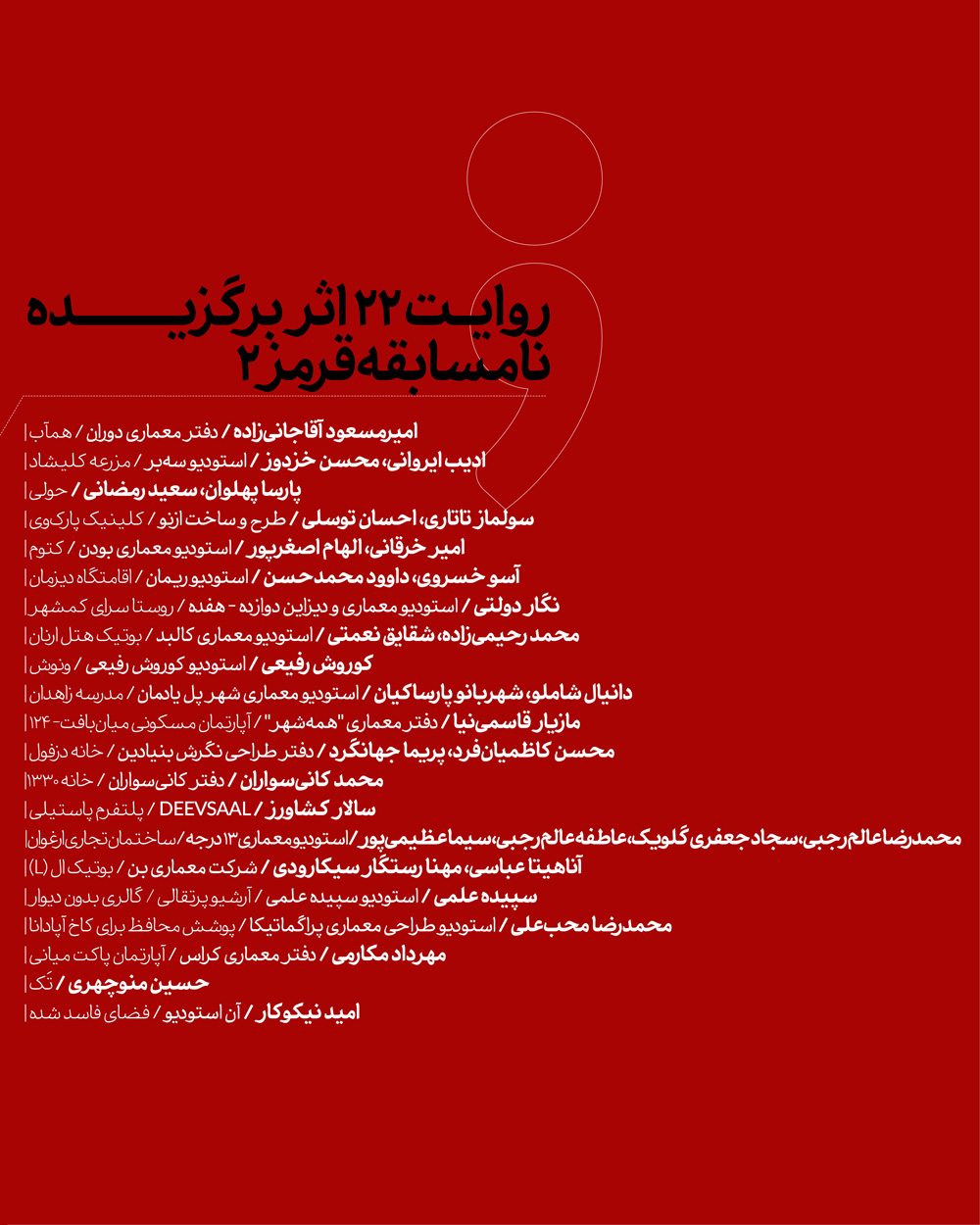 کانون معماران معاصر با افتخار از شما براي حضور در روزهاي برگزاري نامسابقه قرمز۲ دعوت ‌مي‌نمايد.