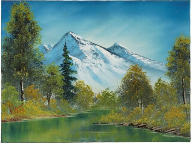 اما «راس» آشکارا از هنر خود و به اشتراک گذاشتن آن با ديگران و از ثبت زيبايي طبيعت بر روي بوم، لذت عميقي ميبرد و مخاطبانش از ديدن او در حين کار لذت ميبردند. او به سادهترين شکل ممکن، مناظر طبيعي را شکل ميداد: برآمدگيهاي سنگي، برکههاي آرام و درختان برگدار را، گويي از هيچ، تنها با يک حرکت ساده کاردک يا لمس قلمموي بادبزني ميآفريد.