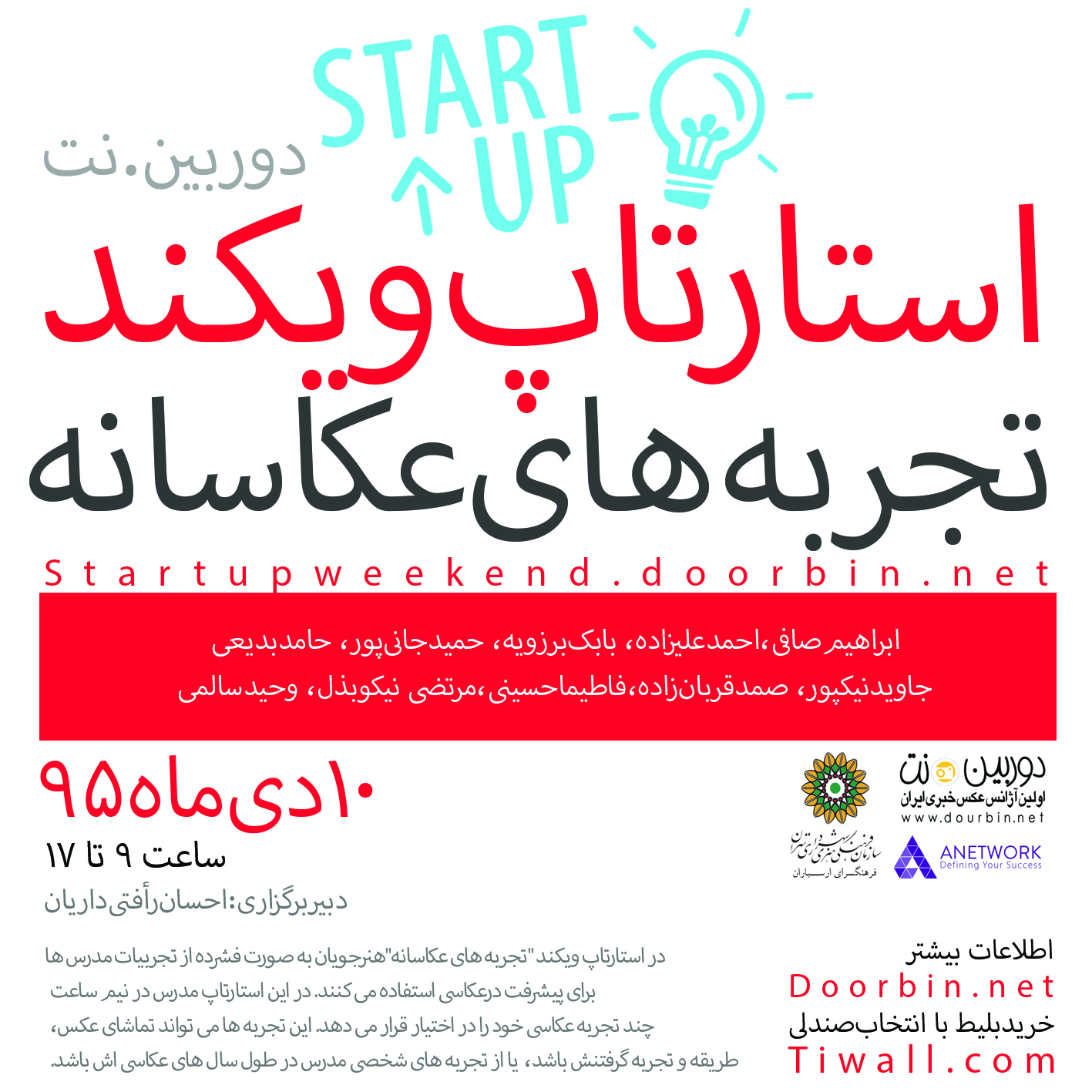اين استارتاپ اولين استارتاپ ويکند دوربين.نت بعد از 12 سال کاري و آموزش با همکاري فرهنگسراي ارسباران است.