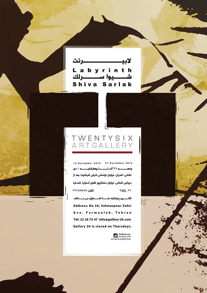 نمايشگاه انفرادي چاپ دستي شيوا سرلک تحت عنوان "لابيرنت" از روز جمعه ۲۶ آذر ماه در گالري 26 گشايش مي يابد.