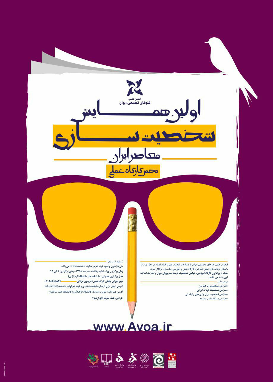 موضوعات : طراحي شخصيت ابر قهرمان/ طراحي شخصيت کودک ايراني/ طراحي شخصيت هاي براي بازي هاي رايانه / طراحي مسکات براي نشر چشمه / متن فراخوان و فرم ثبت نام از طريق سايت انجمن علمي هنرهاي تجسمي ايران  http:www.avoa.ir دريافت نماييد.