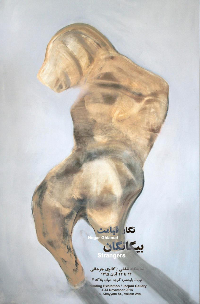 نمايشگاه اثار نقاشي نگار قيامت تحت عنوان  "بيگانگان" از روز جمعه چهاردهم آبان ماه 95 در گالري جرجاني به نمايش گذاشته خواهد شد. در اين مجموعه 12 اثر در ابعاد متفاوت، در حدود تقريبي  (100/150 – 100/70 – 120/80) و با تکنيک رنگ روغن نمايش در مي آيد.