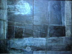 زندگي هنري ام براي من شامل سه دوره است. دوره اول، دوره "آبي" است که از سال 1386 آغاز مي شود: آثار اين دوره شامل نقاشي هايي مي شد که بدون عنصر و فرم بودند؛ فضاي بزرگ با آبي خاکستري هايي که گاهي شي اي نامحسوس از آن بيرون مي زد. در آن زمان، حسي مبهم نسبت به پيرامونم بر من و تفکر و آثارم غلبه داشت. در اين دوران در چند نمايشگاه گروهي نقاشي در تهران و رشت شرکت کردم.