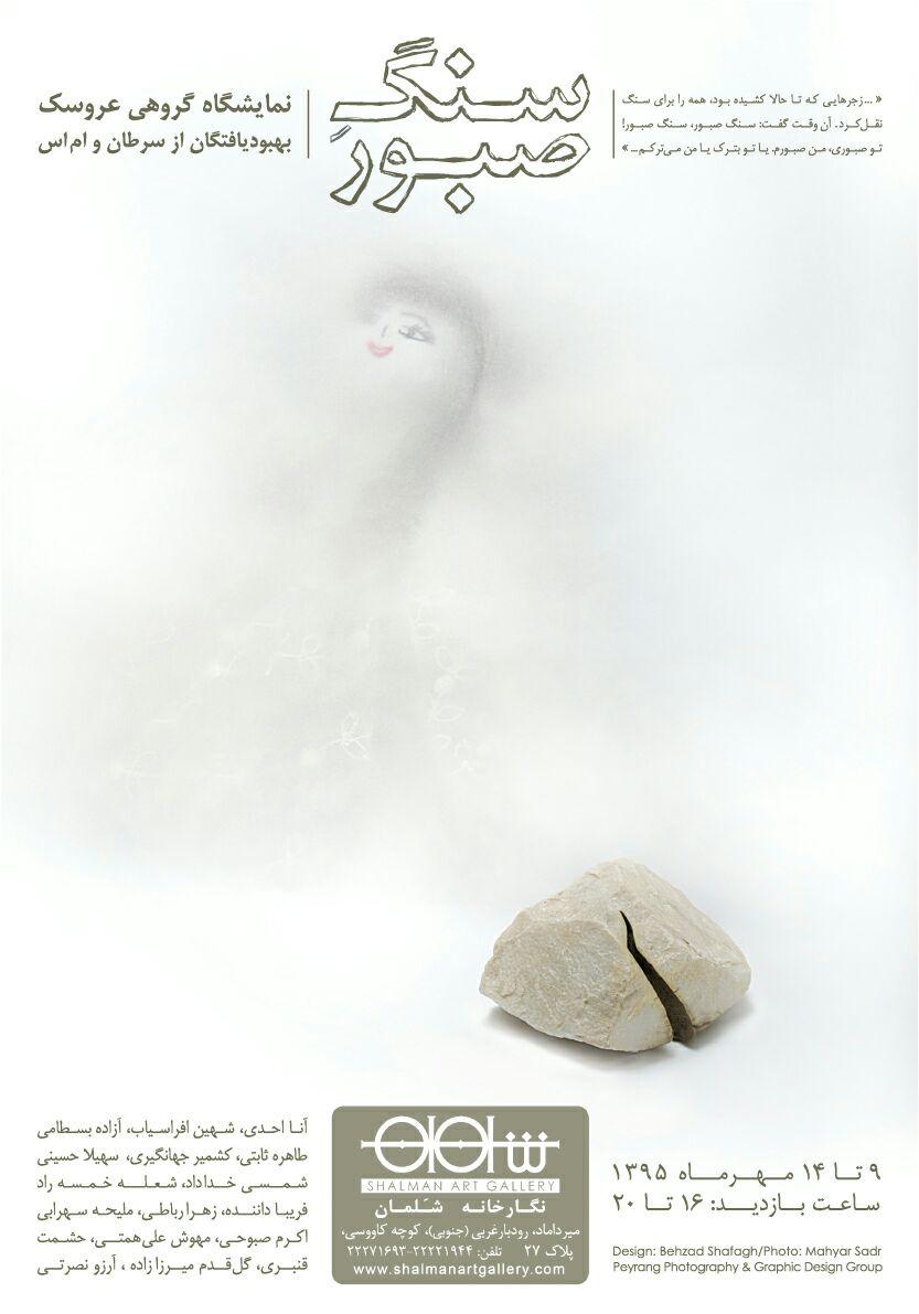 نمايشگاه گروهي عروسک شامل آثار بهبوديافتگان از سرطان تحت عنوان "سنگ صبور" نهم مهر ماه از ساعت 16 الي 20 در گالري شلمان گشايش مي يابد.