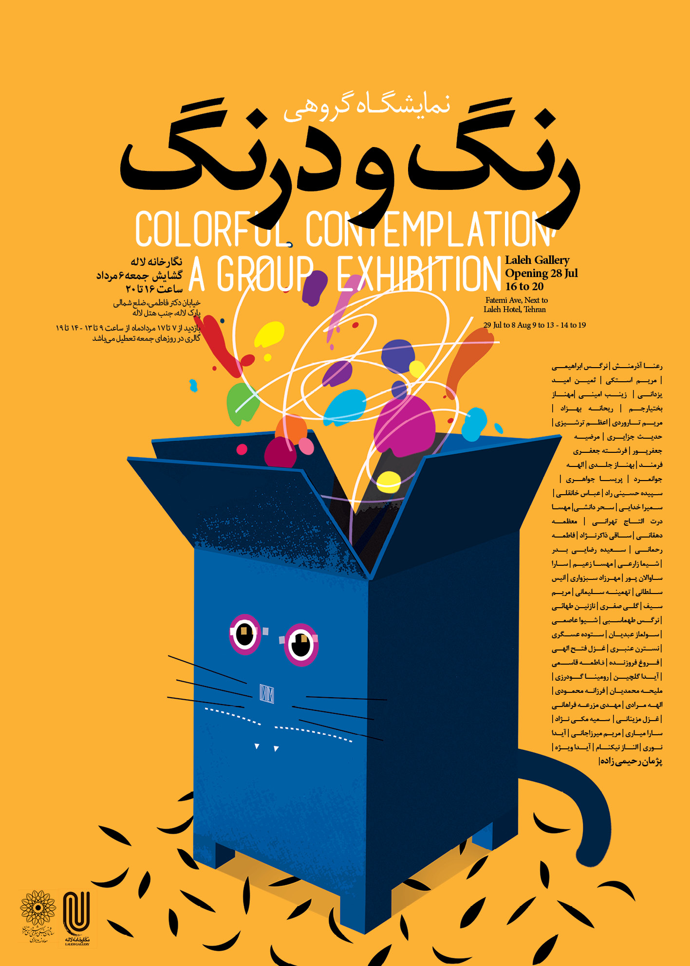 به گزارش گالري آنلاين ، نمايشگاه گروهي به کيوريتوري پژمان رحيمي زاد تحت عنوان عنوان " رنگ و درنگ" از روز جمعه 6 مردادماه در نگارخانه لاله گشايش مي يابد.