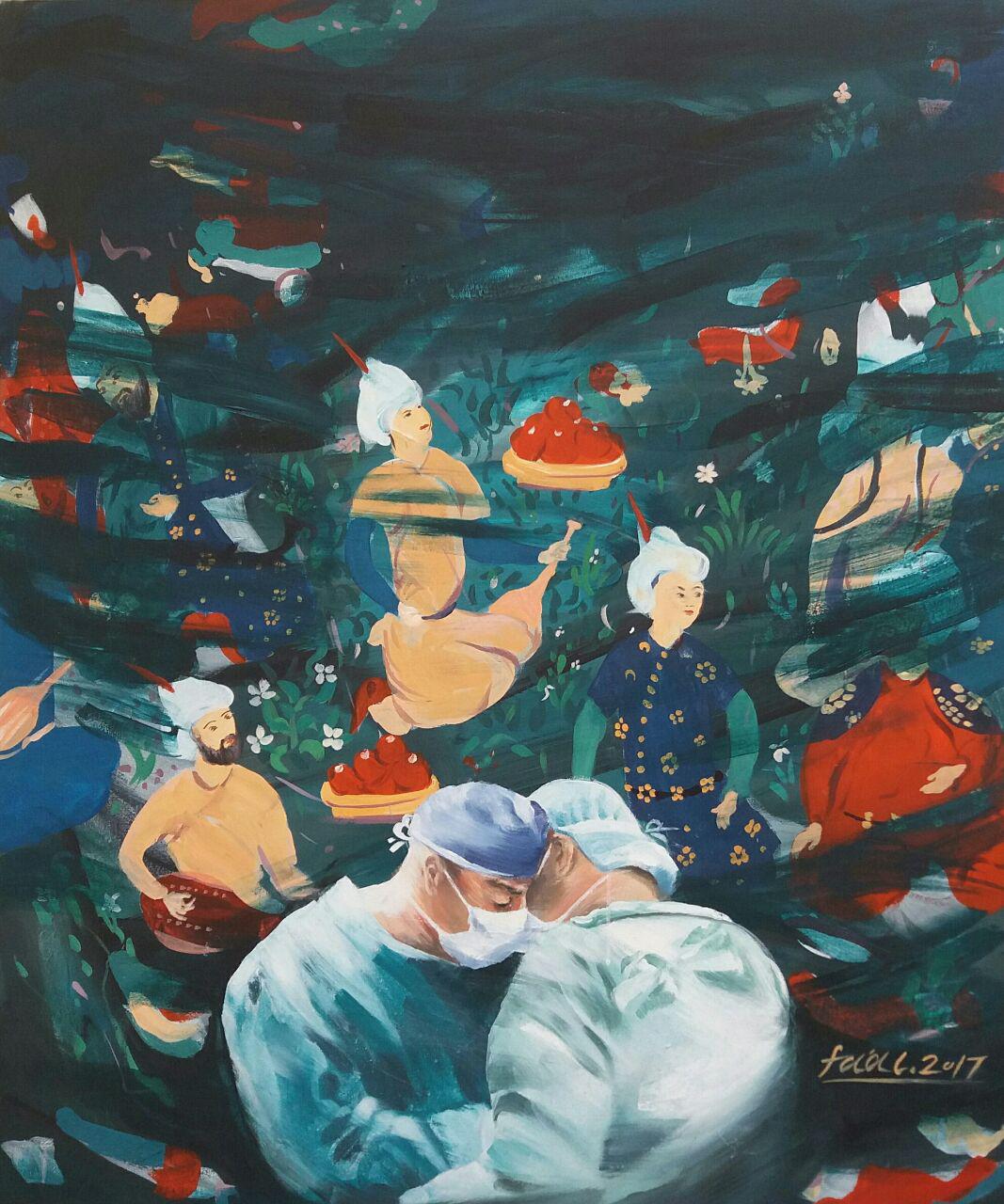 عنوان واکاوي را شايد بتوان براي تمام نقاشي هايم بکار برد، با اين تفاوت که اينبار با نگاهي طنزگونه و کنايه آميز به اين کاوش پرداخته ام.