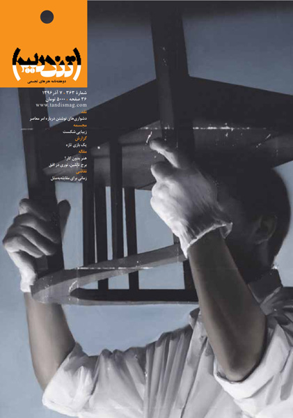 • در بخش گالريگردي اين شماره اميد نقويان درباره نمايش عکسهاي يحيي دهقانپور در گالري آران نوشته است. فرزاد عظيمبيک درباره نمايش نقاشيهاي ياسمن نوذري در گالري دلگشا نوشته است. انيسه ترابي درباره نمايشگاه قهرمانان در منطقه کمعمق، حميد بهرامي در گالري هما و فرشيد رحيمي درباره نمايش آثار حسين والامنش در گالري پروژههاي آران نوشتهاند.