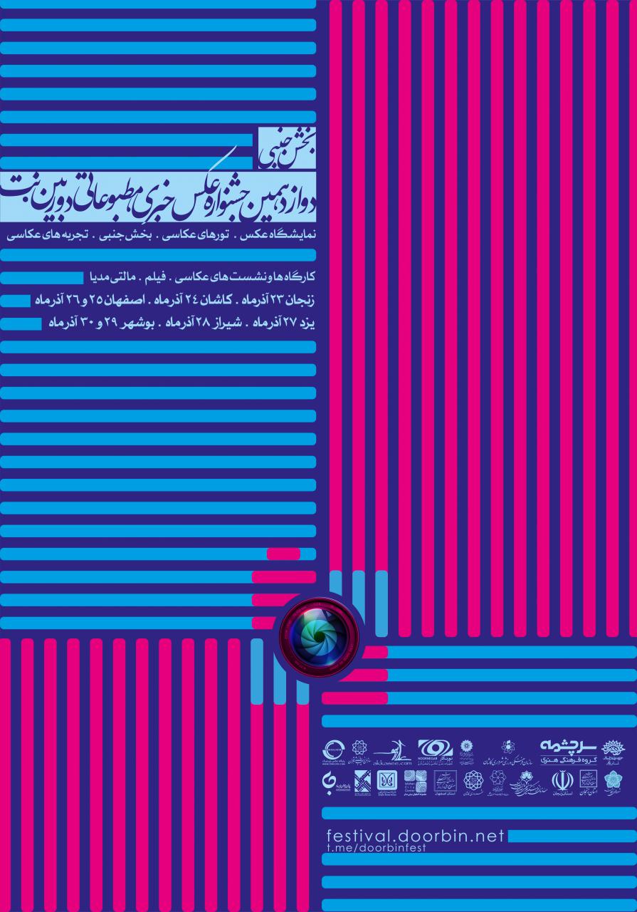 جشنواره دوازدهم توسط آژانس عکس خبري دوربين.نت، حمايت و همكاري فرهنگسراي سرو، سازمان زيباسازي شهرداري تهران، شركت نورنگار، سايت عكاسي، سايت چيليك، اداره کل فرهنگ و ارشاد اسلامي زنجان، خانه هنرمندان زنجان، شهرداري زنجان، سازمان ميراث فرهنگي، صنايع دستي و گردشگري استان زنجان، سازمان فرهنگي ورزشي شهرداري کاشان، گروه فرهنگي هنري سرچشمه، ياران جوان صياد، شهرداري کاشان، سازمان ميراث فرهنگي، صنايع دستي و گردشگري استان اصفهان، مجموعه اصفهان سيتي سنتر، مرکز اصفهان شناسي و خانه ملل، سازمان فرهنگي تفريحي شهرداري اصفهان، مديريت ارتباطات و اموربين الملل شهرداري يزد و حوزه هنري انقلاب اسلامي استان بوشهر برگزار مي گردد.