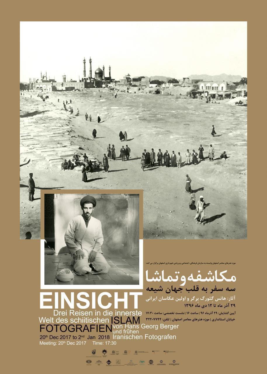 بيش از 100قطعه عکس از مجموعه عکس‌هاي مذهبي هانس گئورگ برگر به همراه آثاري از نخستين عکاسان ايراني در قالب نمايشگاهي با عنوان «مکاشفه و تماشا"؛ "سه سفر به قلب جهان تشيع» با موضوع مذهب و زندگي طلبگي، همراه با رونمايي از کتابِ دو زبانه ي " مکاشفه و تماشا"  روز4شنبه 29 آذرماه ساعت16در محل موزه هنرهاي معاصر اصفهان با حضور علاقه‌مندان به اين هنر گشايش خواهد يافت.