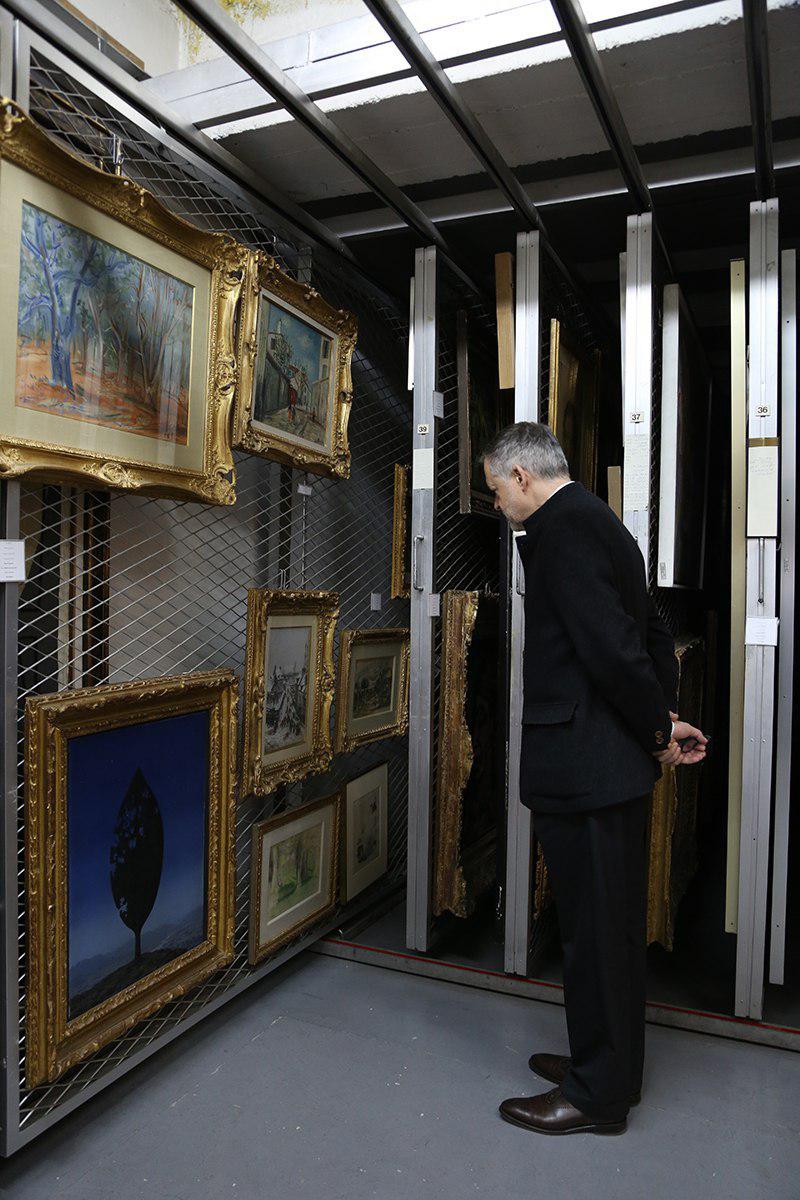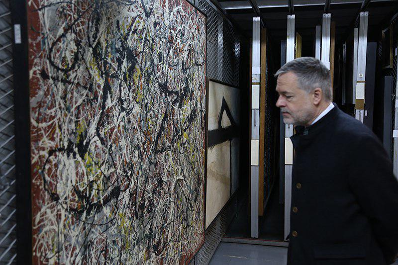 هارتوينگ فيشر؛رييس موزه بريتانيا با همراهي علي محمد زارع رييس موزه هنرهاي معاصر تهران از آثار توني کرگ و گنجينه اين موزه بازديد کرد.