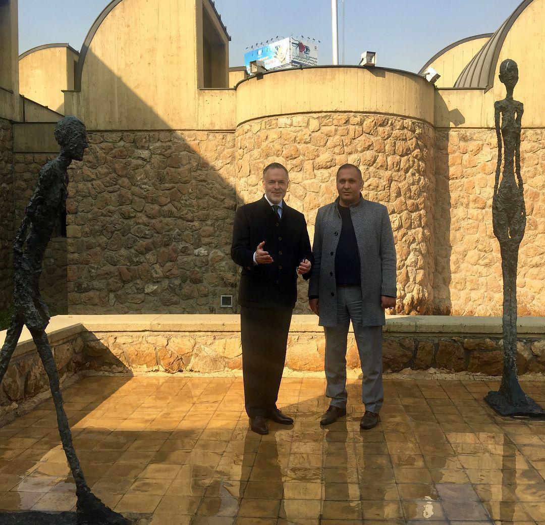 به گزارش گالري آنلاين به نقل از روابط عمومي موزه هنرهاي معاصر تهران ؛ هارتوينگ فيشر؛رييس موزه بريتانيا ضمن بازديد از گنجينه موزه هنرهاي معاصر تهران و نمايشگاه آثار حجمي و طراحي هاي آثار توني کرگ(هنرمندانگليسي – آلماني) ، با علي محمد زارع رييس موزه هنرهاي معاصر تهران ديدار و گفت و گو کردند.