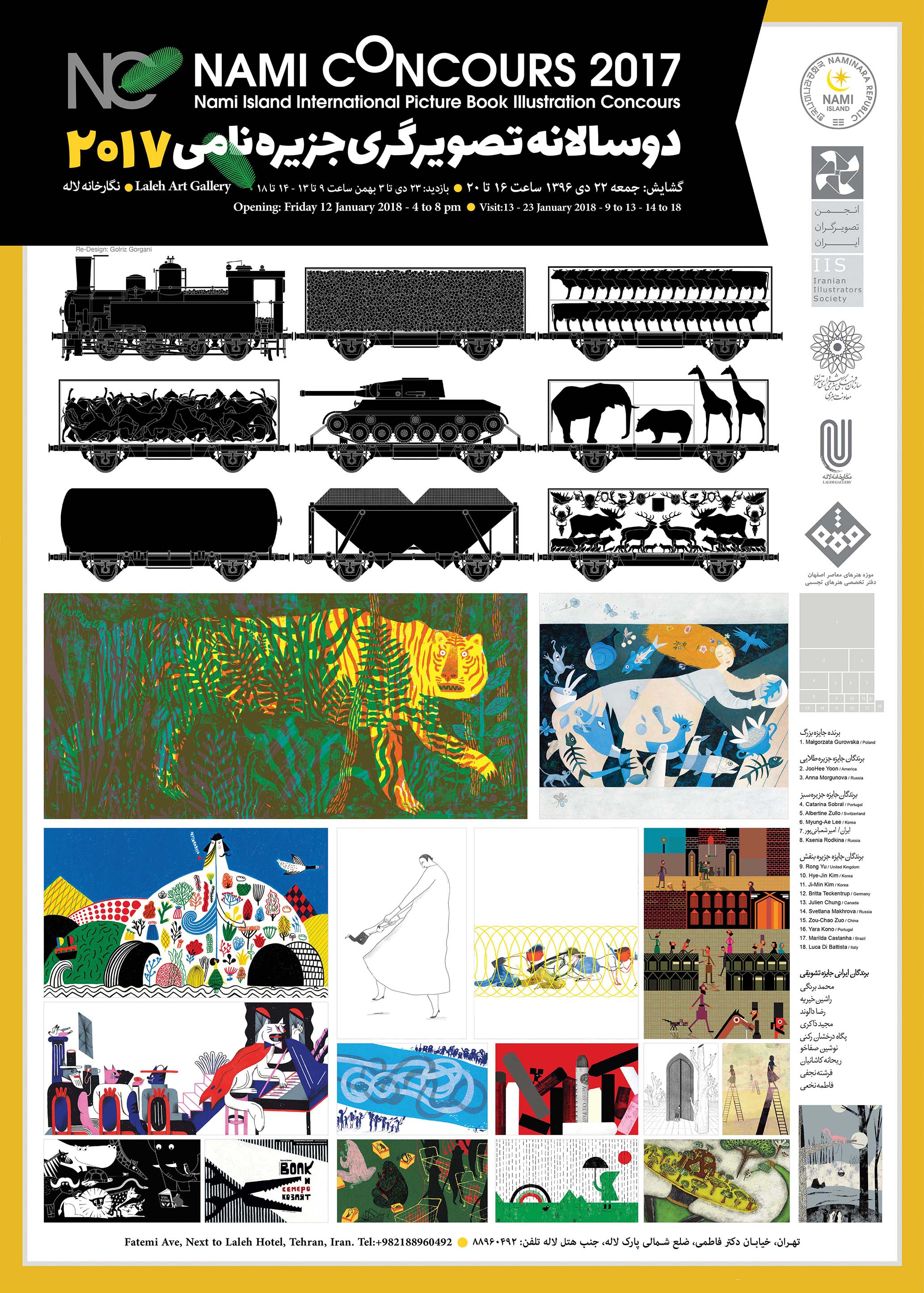 نمايشگاهحاضر شامل آثار برنده جايزه بزرگ، جايزه جزيره طلايي، جايزه جزيره سبز، جايزه جزيرهبنفش و برندگان تشويقي ايراني 2017 و آثار نوشين صفاخو (برنده جايزه جزيره طلايي2013)، حسن عامهکن (برنده جايزه جزيره سبز 2015) است.