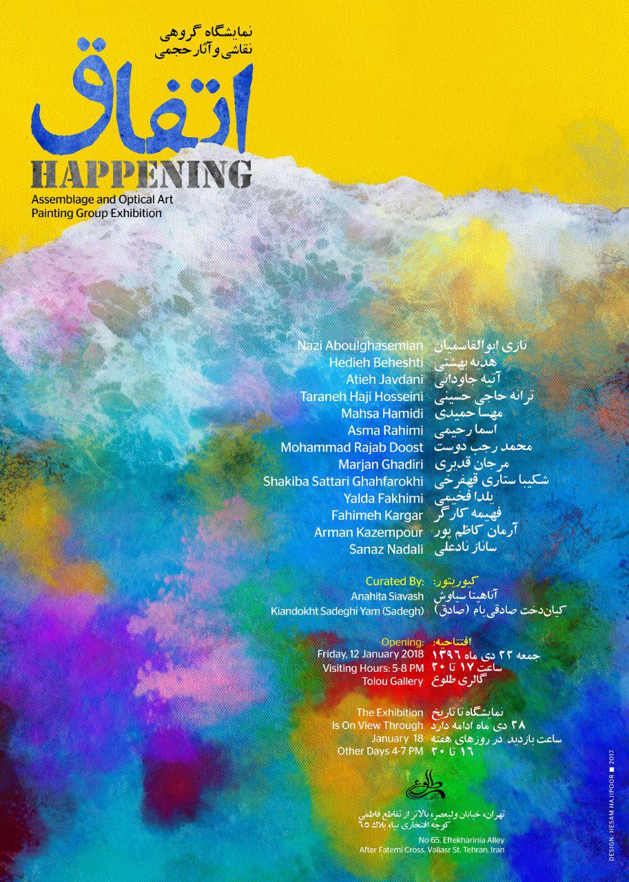 به هر سمتي که مي نگري قابي را ميبيني که يک اثر را در آغوش گرفته با موضوعات مختلف و در کنار هر ديوار ميبيني حجم هايي که هر کدام با دستان هنرمندي همراه شده اند تا پديدار شوند تلفيق آثار روي ديوار و حجمهايي که در کنار آنها به همسايگي نشسته نشان از تنوع در هنر است که نشات گرفته از فرهنگها و باورهايي که هر خالق هنري در ذهن خود پرورانده اثر هر هنرمند فارغ از نوع هنر و فارغ از تکنيک و رنگ و لعاب آن نتيجه ي يک اتفاق است و ما در گالري طلوع با موضوع اتفاق حضور شما را به انتظار نشسته ايم تا برايند هنر را در چشمان مهربان شما هنردوستان جستجو کنيم .