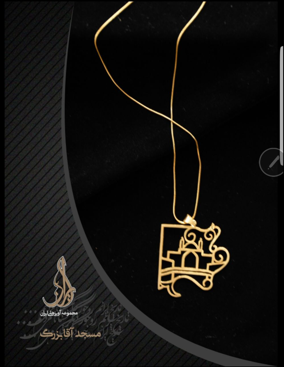 جنس اين گردن آويزها از روکش طلا بوده و نقوش روي آنها از جمله: سي و سه پل، گنبد سلطانيه، برج آزادي، بقعه شيخ صفي الدين اردبيلي، منار جنبان و… است.