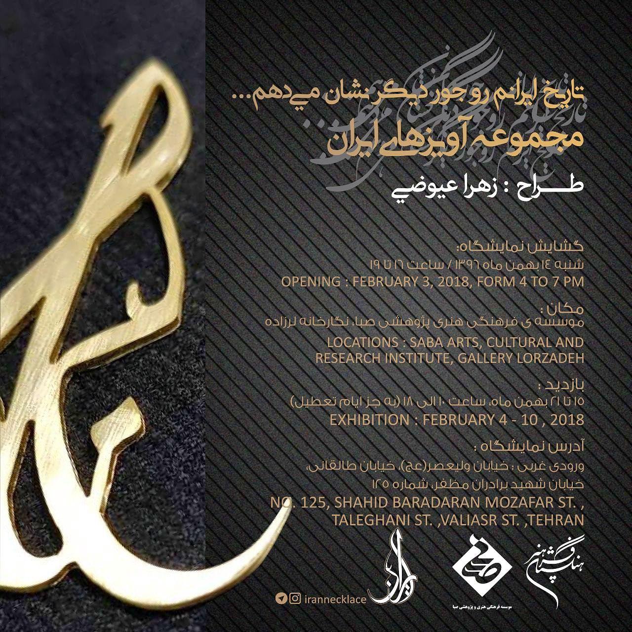 به گزارش گالري آنلاين به نقل از روابط عمومي موسسه فرهنگي هنري صبا، وابسته به فرهنگستان هنر، زهرا عيوضي در اين مجموعه، 16 گردن آويز دست ساخته خود را به نمايش ميگذارد. ويژگي اين گردن آويزها نقش کار شده روي آنهاست که 16 بناي تاريخي را در ترکيب با خطوط اسليمي نشان داده و معرفي ميکند.