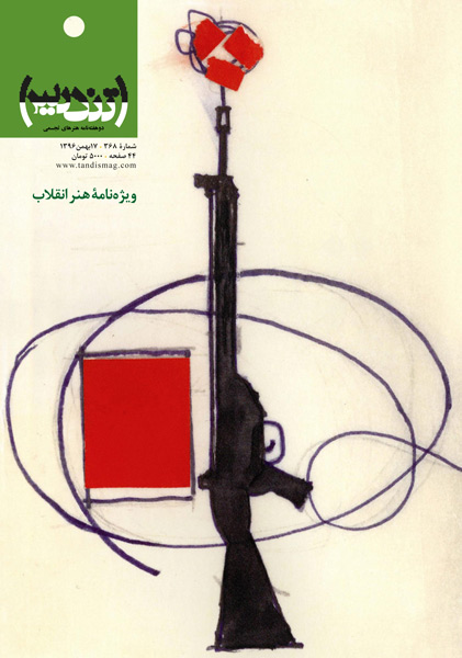 طرح روي جلد: اثري از کوروش شيشهگران (مربوط به ويژهنامهي هنر انقلاب)
