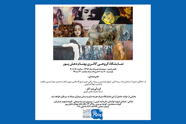 به گزارش گالري آنلاين به نقل از مهر، نگارخانه بهنام دهش پور در روز جمعه ۵ خرداد ميزبان «نمايشگاه گروهي نقاشي» جمعي از هنرمندان کشورمان با هدف حمايت از بيماران مبتلا به سرطان خواهد بود.