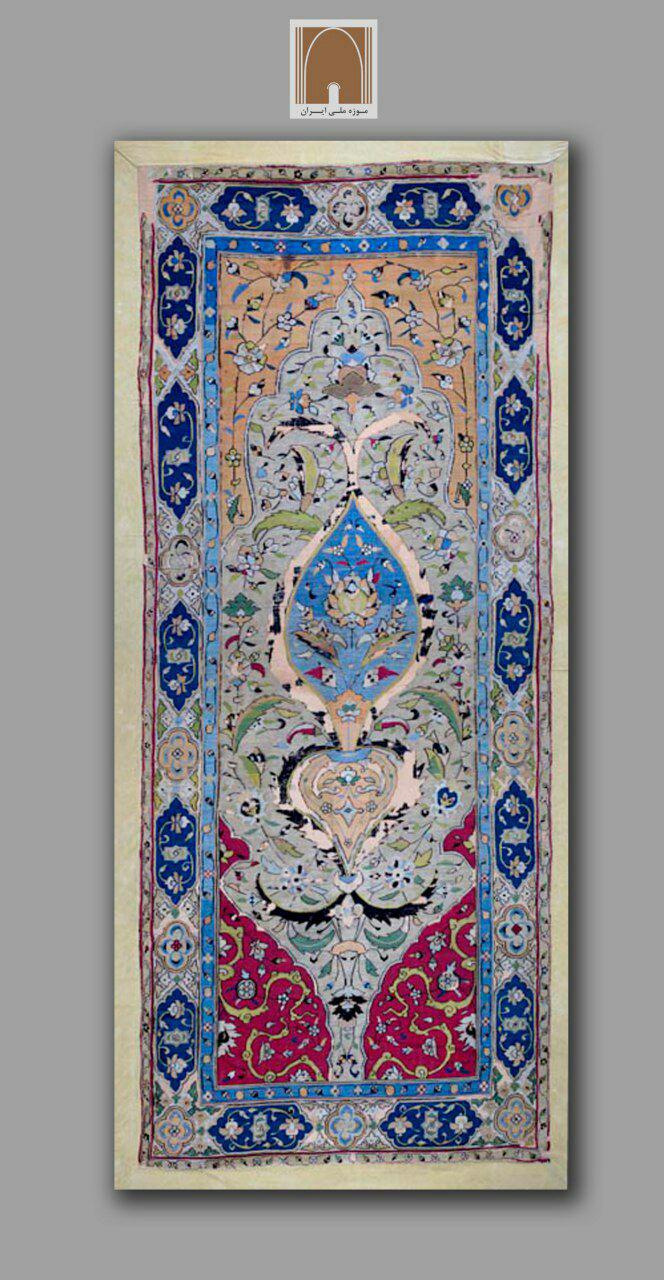 مسئول موزه دوران اسلامي گفت: يکي از آثار برجسته موزه ملي ايران در اين نمايشگاه گليم ابريشمي است که توسط هنرمندان عهد صفوي (احتمالاً نيمه دوم سدۀ دهم هجري قمري) در کارگاه هاي کاشان يا اصفهان بافته شده است. نقش اين گليم لچک ترنج با زمينه نخودي است و يک گلدان در مرکز با شاخه و برگ هاي اسليمي و ختايي و گل هاي شاه عباسي سرتاسر متن را با رنگ هاي گوناگون پوشانده تزيين يافته است. اين گليم به شماره موزه ۲۰۸۳۰در موزه دوران اسلامي نگه داري مي شود.