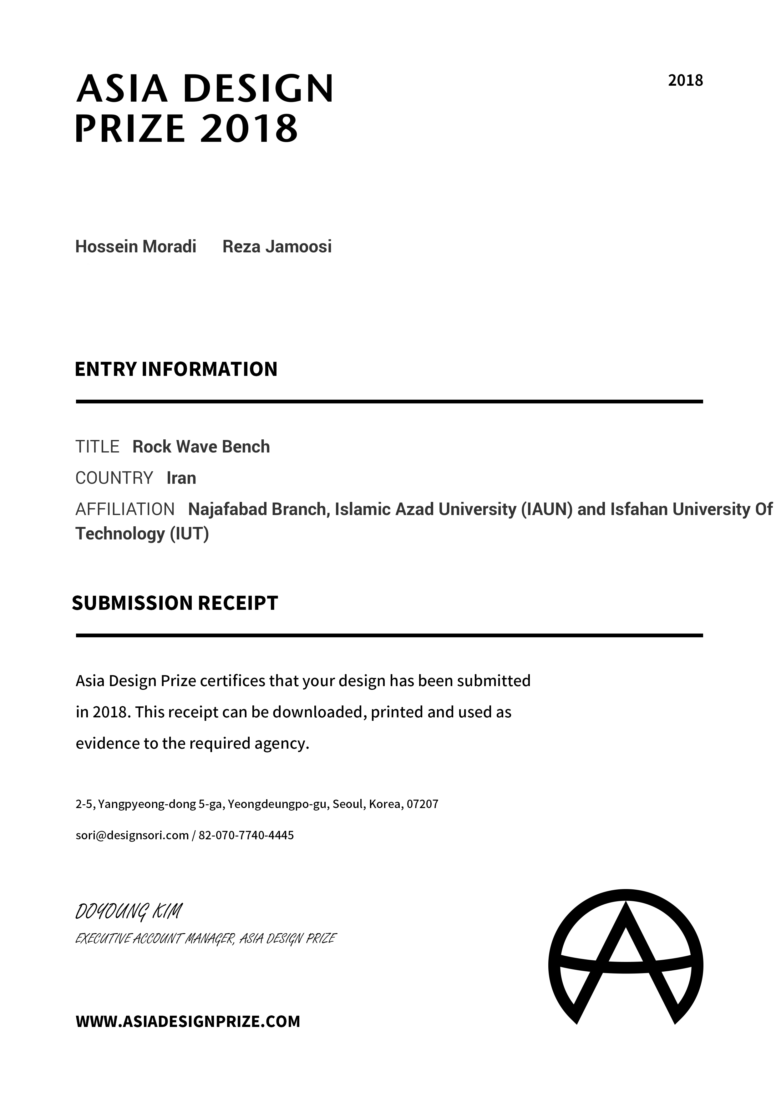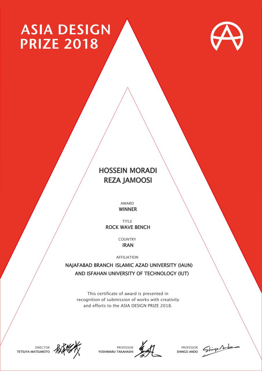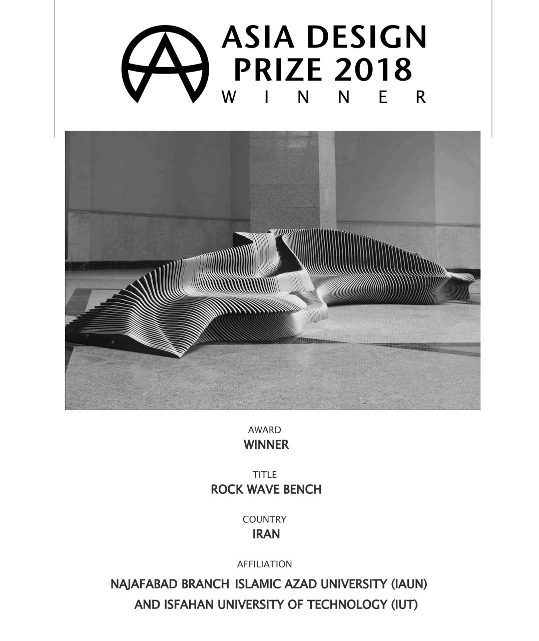 تيمي از مهندسين ايراني با پروژه اي تحت عنوان "نيمکت موج صخره اي"، با طراحي حسين مرادي، توانستند در مسابقه "جايزه طراحي آسيا 2018" موقيت کسب کنند.
