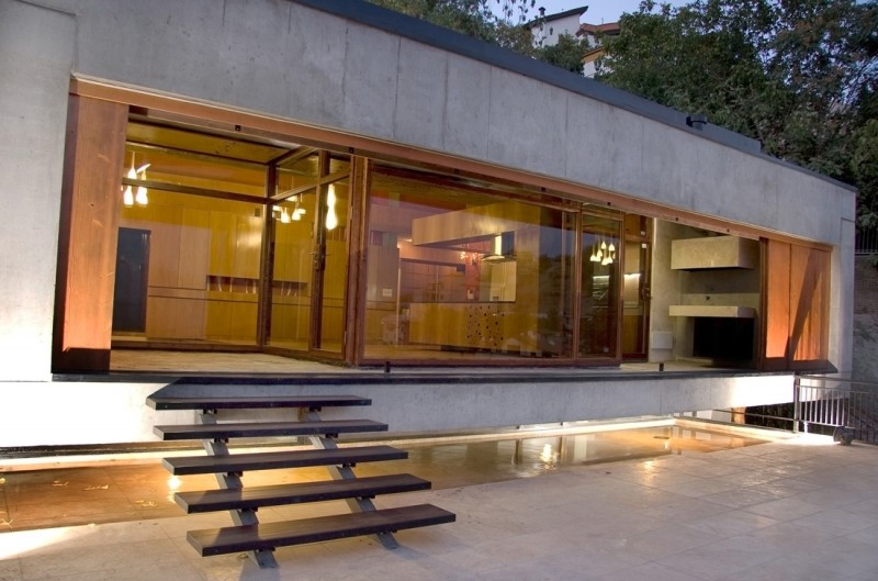 در هر گوشه ساختمان دوستي بين ساختمان و طبيعت اطرافش حس مي شود، اما نکته جالب تر تراس خانه است که برابر است با طول ساختمان، تراسي که شب هاي خنک تابستاني را دلچسب تر مي کند، نماي اين ساختمان از دو متريال تشکيل شده است، چوب و بتن. ترکيب اين دو متريال در نما باعث مقاومت بنا در مقابل عوامل جوي همانند برف و باران مي شود و مقاومت بسيار خوبي دارد.