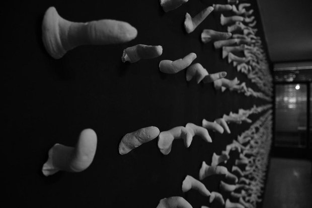 وي در مورد انگشت هاي روي ديوار نيز بيان کرد: هيچ کدام از انگشت ها يک شکل نيستند و با يکديگر تفاوت دارند و با گچ قالب گيري و سپس روي ديوار نصب شده اند.