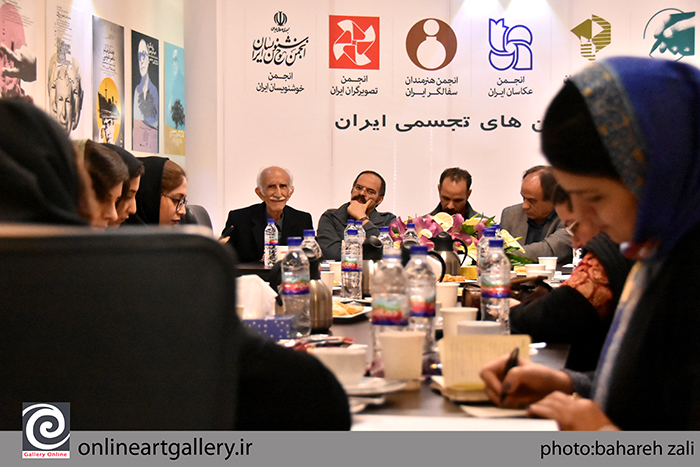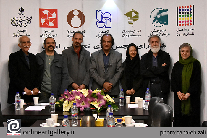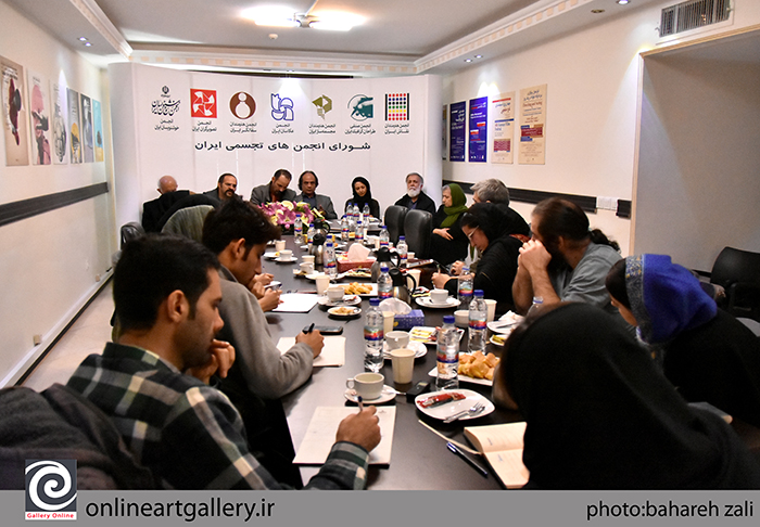 به گزارش گالري آنلاين، نشست شوراي انجمن هاي تجسمي با حضور معصومه مظفري از انجمن نقاشان، بهرام کلهرنيا از انجمن صنفي طراحان گرافيک، نگار نادري پور از انجمن مجسمه سازان ، سيف الله صمديان از انجمن عکاسان، بهزاد اژدري از انجمن سفالگران، کمال طباطبايي از انجمن تصويرگران ،غلامحسين اميرخاني از انجمن خوشنويسان، در ساختمان شماره ۲ خانه هنرمندان برگزار شد.