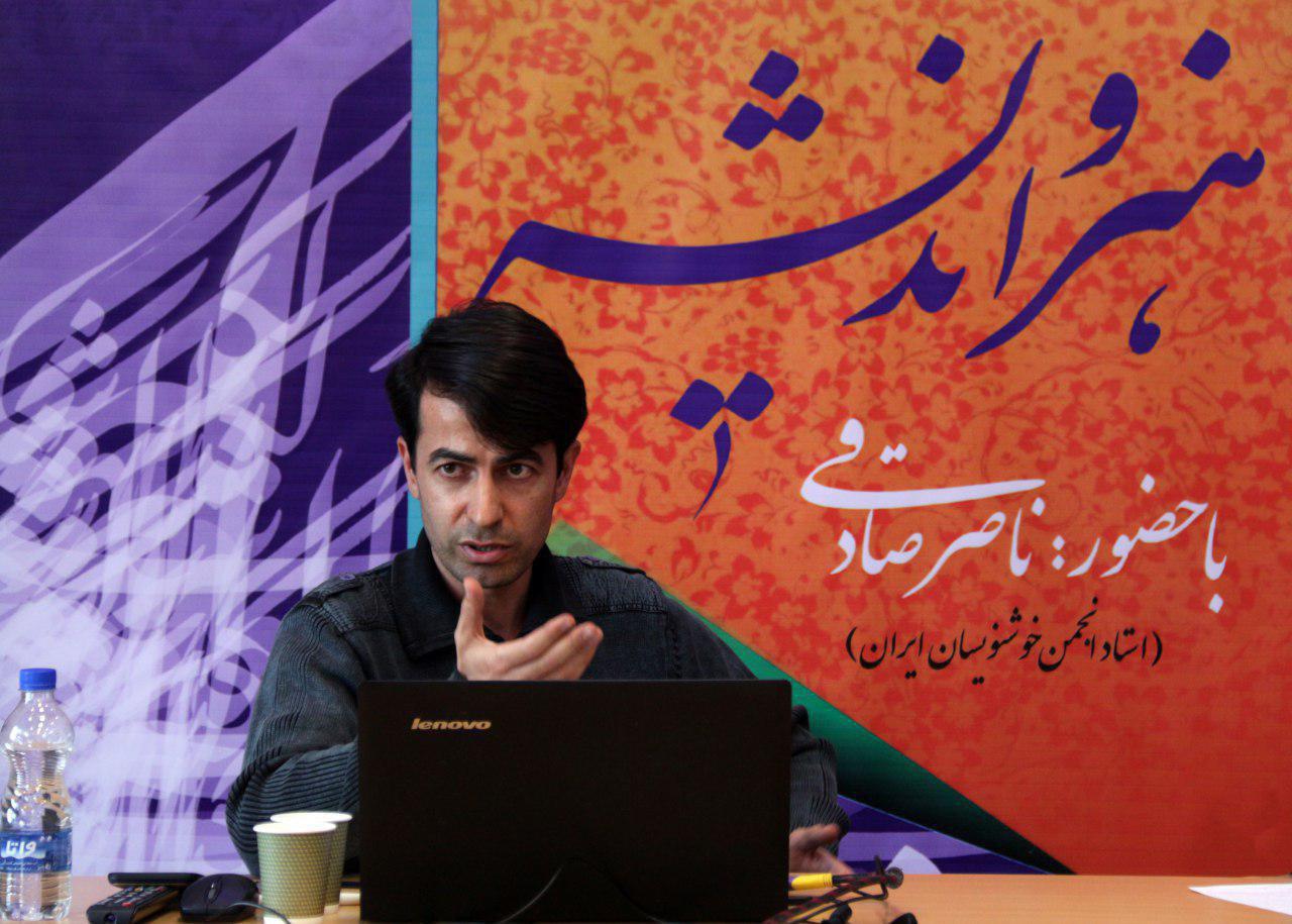 نشست خوشنويسي هنر و انديشه با حضور «ناصر صادقي» هنرمند خوشنويس و داراي درجه استادي خط نستعليق از انجمن خوشنويسان ايران، عصر روز چهارشنبه 16 اسفندماه 1396 با حضور: دکتر امير رجبي؛ رييس حوزه هنري استان اردبيل، حسن معترض؛ رييس انجمن خوشنويسان استان و برخي استاتيد استاني از جمله؛ هوشنگ زمانيان، حجت مجرد، احمد شيخ زاده، بهزاد جماعتي، والح فتاحي، امين رحيمي، خانم ها؛ حامد سلطاني، رويا عيسي پور، کيميا فتاحي، سلطان زاده، دانشجويان و جمعي از علاقمندان، در حوزه هنري استان اردبيل برگزار شد.